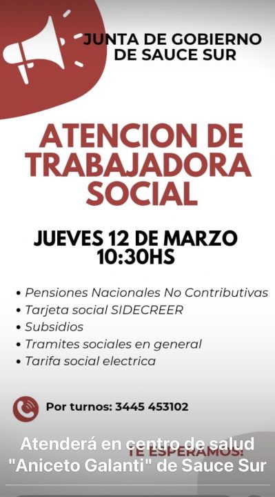 La actividad tendrá lugar este jueves 12 de marzo, a partir de las 10:30 horas, en las instalaciones del Centro de Salud «Aniceto Galanti». Esta iniciativa busca facilitar el acceso a trámites esenciales y programas de asistencia sin que los habitantes deban trasladarse a otras localidades.